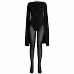 Whether you’re heading to an exclusive event or leveling up your street style, this bodysuit offers a seamless, second-skin fit that highlights your curves while the cape adds a regal touch of mystery.