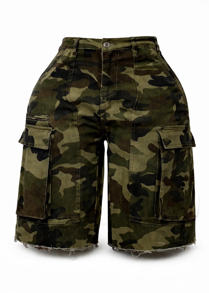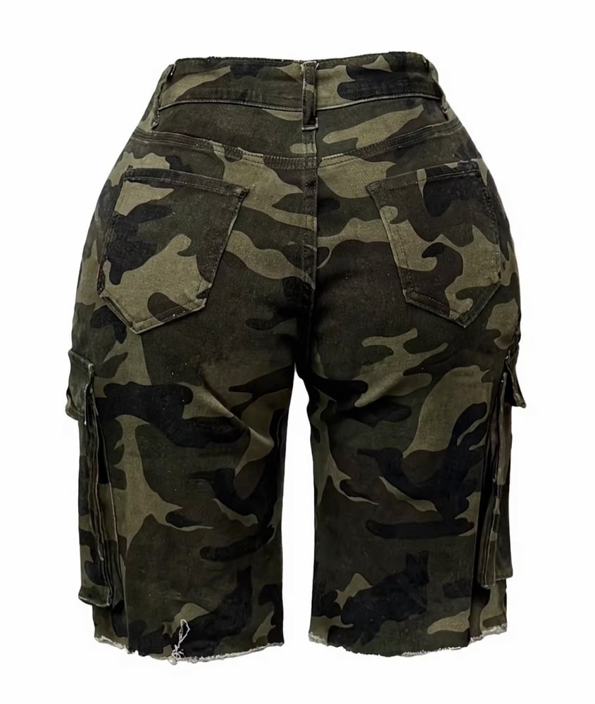 Serving body with a little edge. These camo cargo Bermuda shorts are that go-to piece when you want casual but still put together. Featuring a high-waisted fit and structured design that snatches the waist while giving that relaxed, street-style vibe.