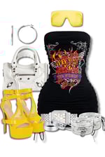 Turn heads and break hearts in this fire graphic mini. The strapless ruched bodycon fit hugs you in all the right places while the bold rose + flame graphic brings that edgy, tattoo-inspired vibe. The side drawstrings let you adjust the length so you can go flirty or full-on baddie mode — your choice.