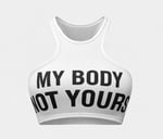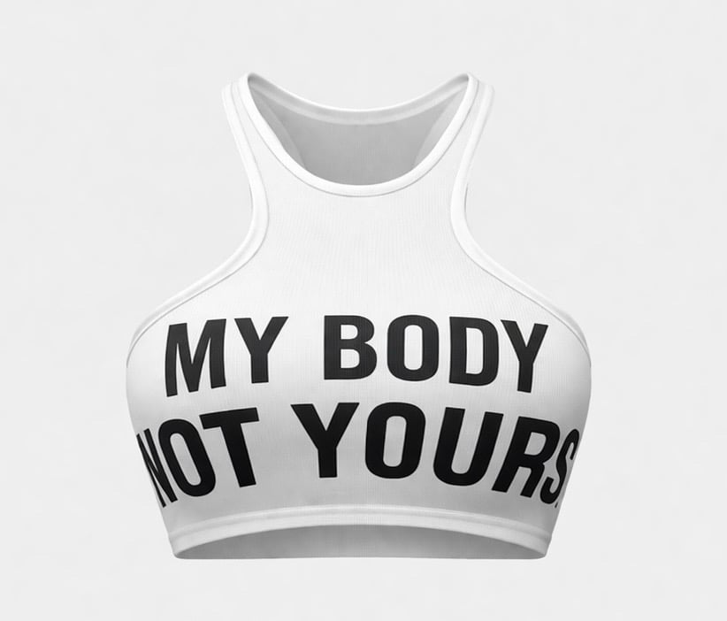 Make a statement without saying a word. The My Body Not Yours halter crop is for the baddies who move with confidence and stand firm in their power. Designed with a comfort fitting. This top hugs your curves while giving a smooth, flattering finish. The high neckline and bold front graphic bring the perfect mix of edgy and feminine energy.