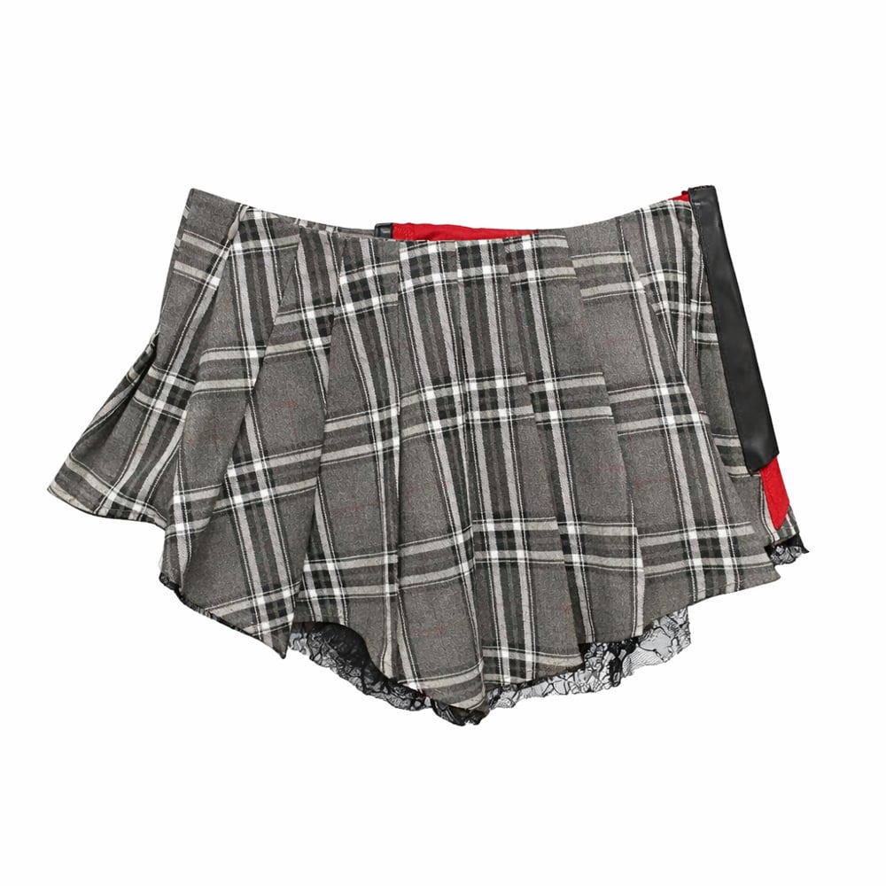 Make a statement in our Rockstar Rebel Patchwork Skirt. This bold mini skirt combines edgy and playful with its mixed plaid panels, faux leather details, zipper accents, and lace trim. The asymmetrical design and utility pocket add a rebellious vibe that instantly elevates any outfit.