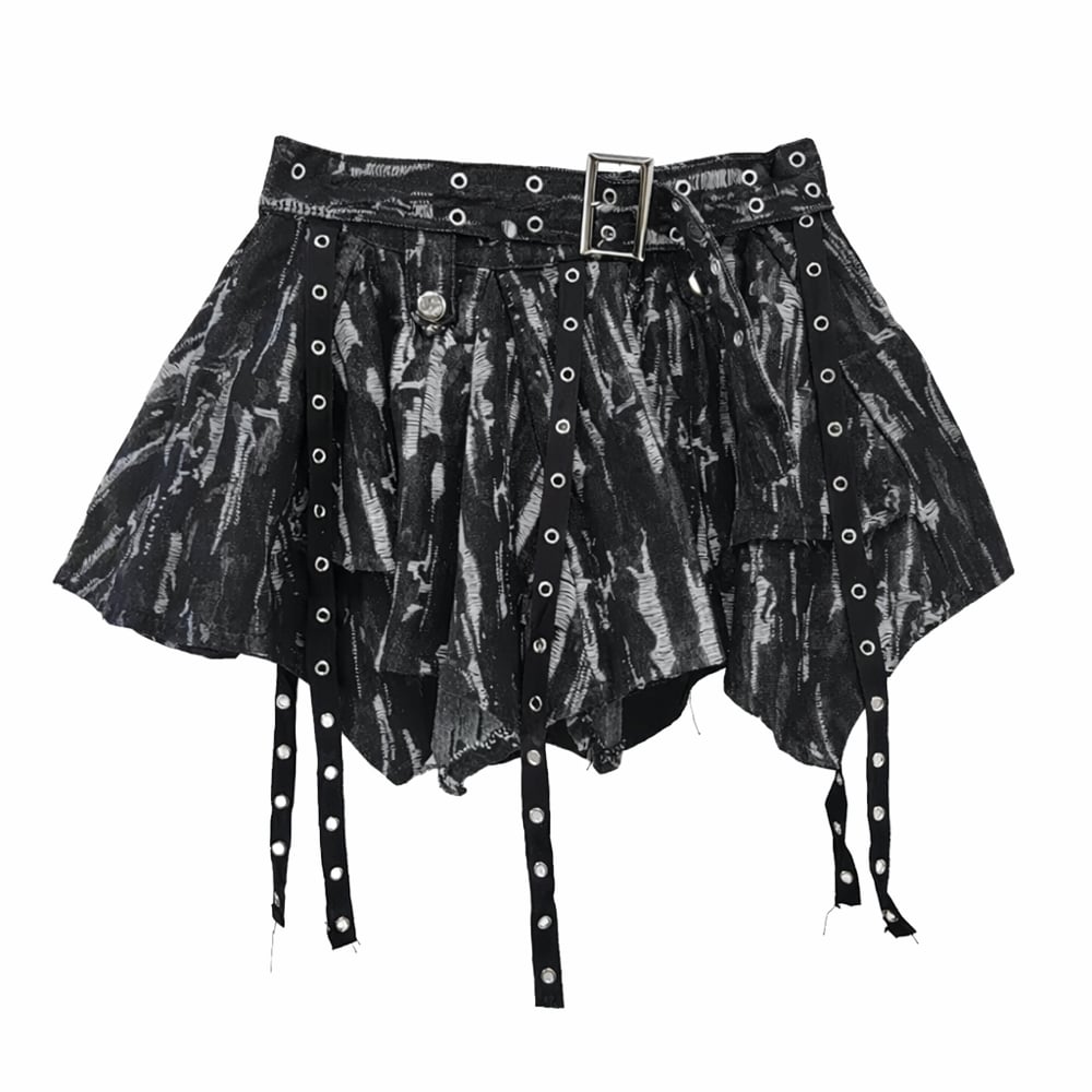 Step into your bold era, babe. This statement skirt is not for the shy — it’s for the girls who like to stand out and put that look ON. Featuring a layered asymmetrical hem, silver grommet strap detailing, and a built-in belt with buckle, this skirt gives edgy, street-chic energy with a feminine twist.