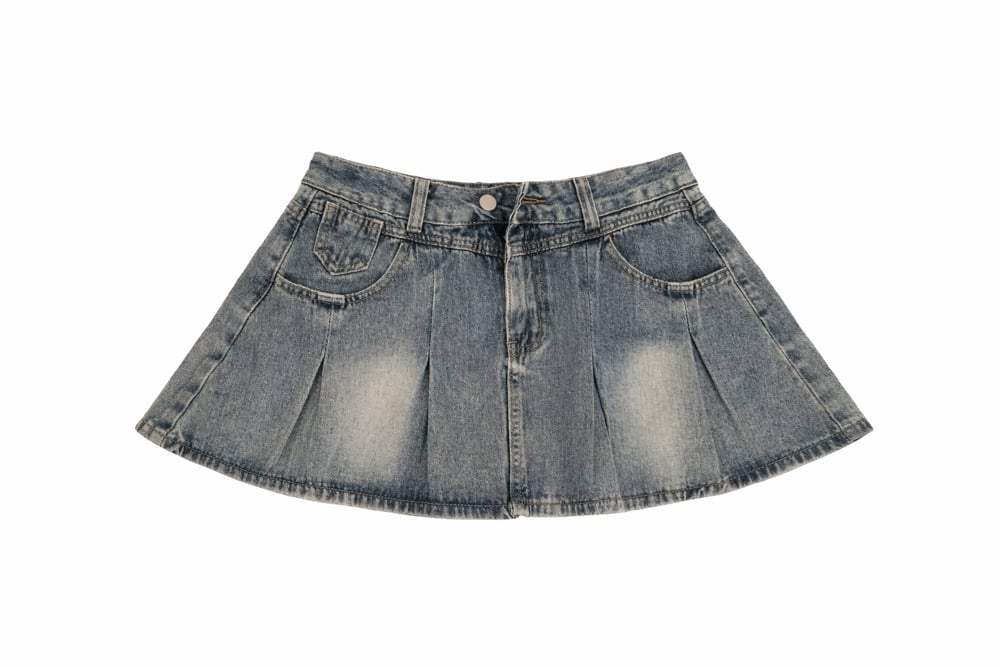 Meet your new go-to mini. This vintage-wash denim skirt is giving effortless baddie with a soft throwback vibe. Designed with a structured, no-stretch fit, it features subtle pleated detailing for that flirty flare effect, light distress fading on the front, and classic pocket accents for a laid-back but put-together look. The high-waisted cut snatches the waist while the mini length keeps it cute, confident, and outside-ready.